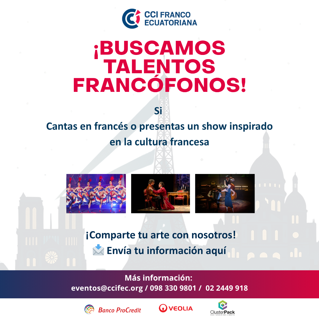 Para sus diversas actividades en las ciudades de Quito, Guayaquil y Cuenca, la Cámara de Comercio Franco-Ecuadoriana está a cargo de artistas franceses.