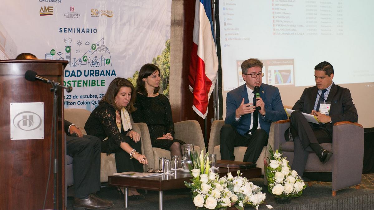 La 4ª edición del Seminario "Smart Cities" se enfocó en el tema de la "Movilidad Urbana y Sostenible", el mismo que se llevó a cabo el miércoles 23 de octubre 2019 en el Hotel Hilton Colón de Quito. El seminario fue organizado por la Cámara de Comercio Franco-Ecuatoriana (CCIFEC) con el apoyo de la Agencia Francesa de Desarrollo (AFD), Calypso Networks Association y la Embajada de Francia en Ecuador.