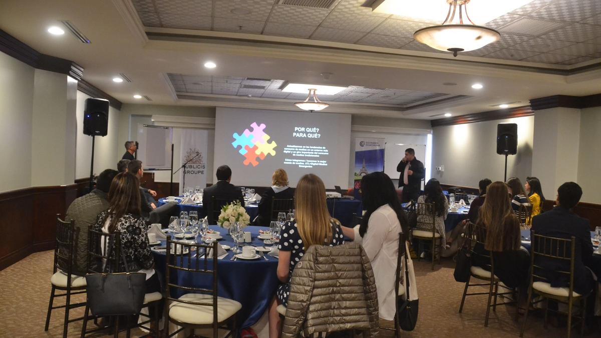 Reunió a más de 20 Director.e.a.s y empleados de empresas socias o no de la Cámara Franco-ecuatoriana quienes tuvieron la oportunidad informarse sobre esta temática de actualidad gracias a las presentaciones de los dos invitados: Esteban Castillo, Director de Transformación del Grupo Publicis Ecuador, y Bernardo Celis, Gerente General de la empresa Zenith Media.