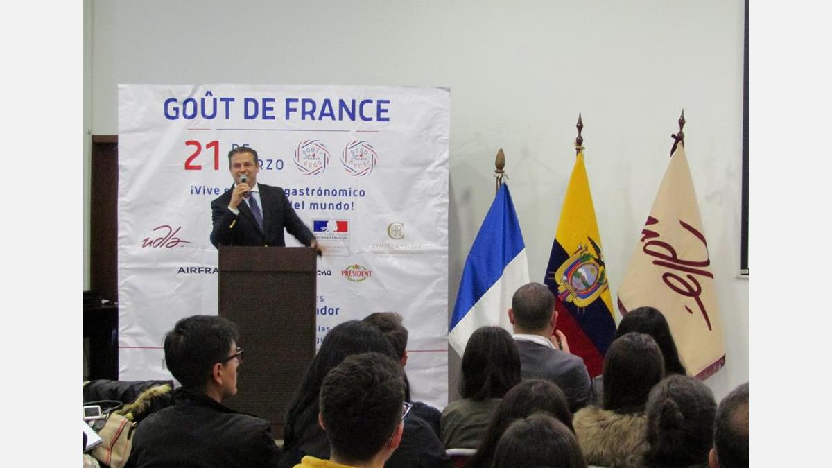 De hecho, el 20 de marzo pasado, la CCIFEC organizó conferencias gastron´´omicas en el campus Granados de la Universidad de las Americas (UDLA). Estas conferencias reunieron a varias grandes personalidades de la gastronomía francesa y ecuatoriana como el chef franco-ecuatoriano André Obiol y Pablo Conselmo, el Presidente de la Asociación de los Catadores en Ecuador. Paralelamente a estas conferencias, los participantes pudieron catar algunos productos franceses típicos como el queso, el vino, el pan o las crêpes, propuestos por diversas empresas y/o comerciantes : Cyrano (pan), Parmalat (queso), Proalco (vino), Dibeal (vino), Hayfi (vino), Mondel (queso), Tannenwald (queso), Haypan (pan), Sel et Lumi`ere (crêpes).