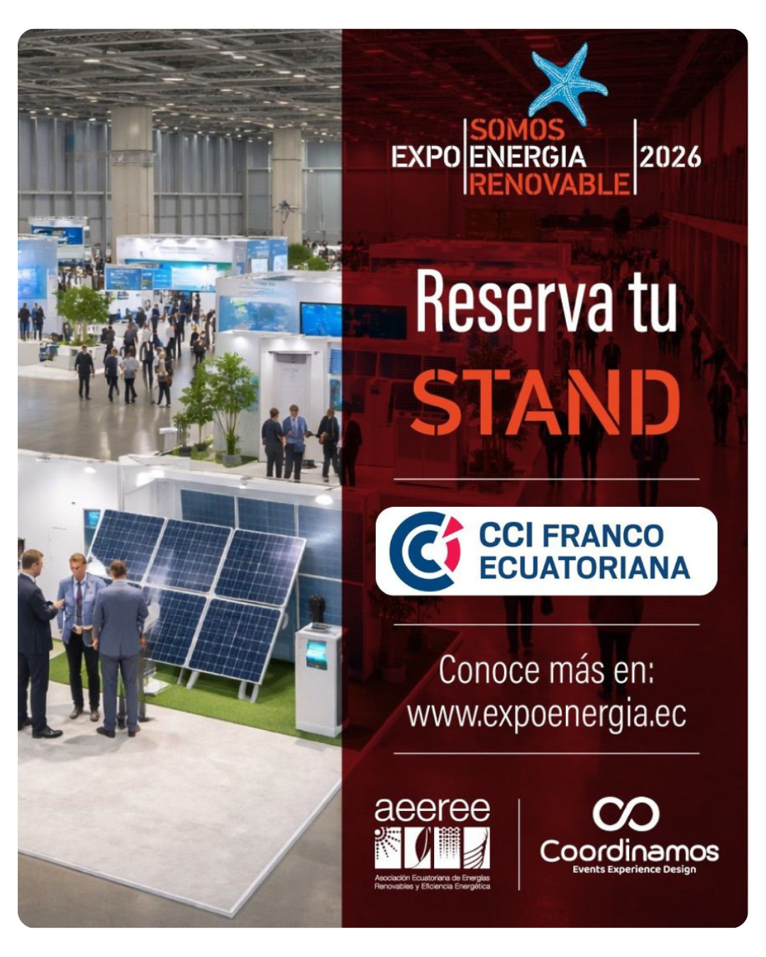 La Chambre de Commerce Franco-Équatorienne (CCIFEC) s’associe en tant que partenaire institutionnel à l’Association Équatorienne des Énergies Renouvelables et de l’Efficacité Énergétique (AEEREE) pour l’organisation d’EXPOENERGÍA 2026 et de l’Energy Summit Ecuador, le principal point de rencontre des leaders, des autorités et des experts du secteur énergétique. ⚡️🌿