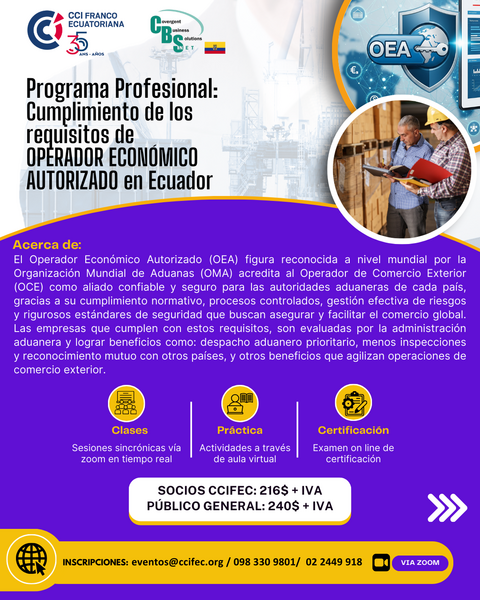 Este programa es ideal para comprender e implementar los estándares internacionales del programa OEA y optimizar tus operaciones.
