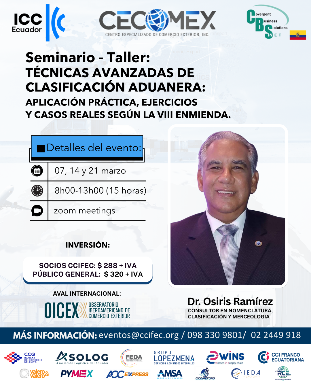 Seminario–Taller de Técnicas Avanzadas de Clasificación Aduanera: Aplicación práctica, ejercicios y casos reales según la VIII Enmienda